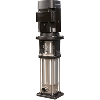 Vertical, multistage centrifugal pump with suction and discharge ports on the same level. Pump materials in contact with the liquid are in high-grade stainless steel (EN 1.4401)